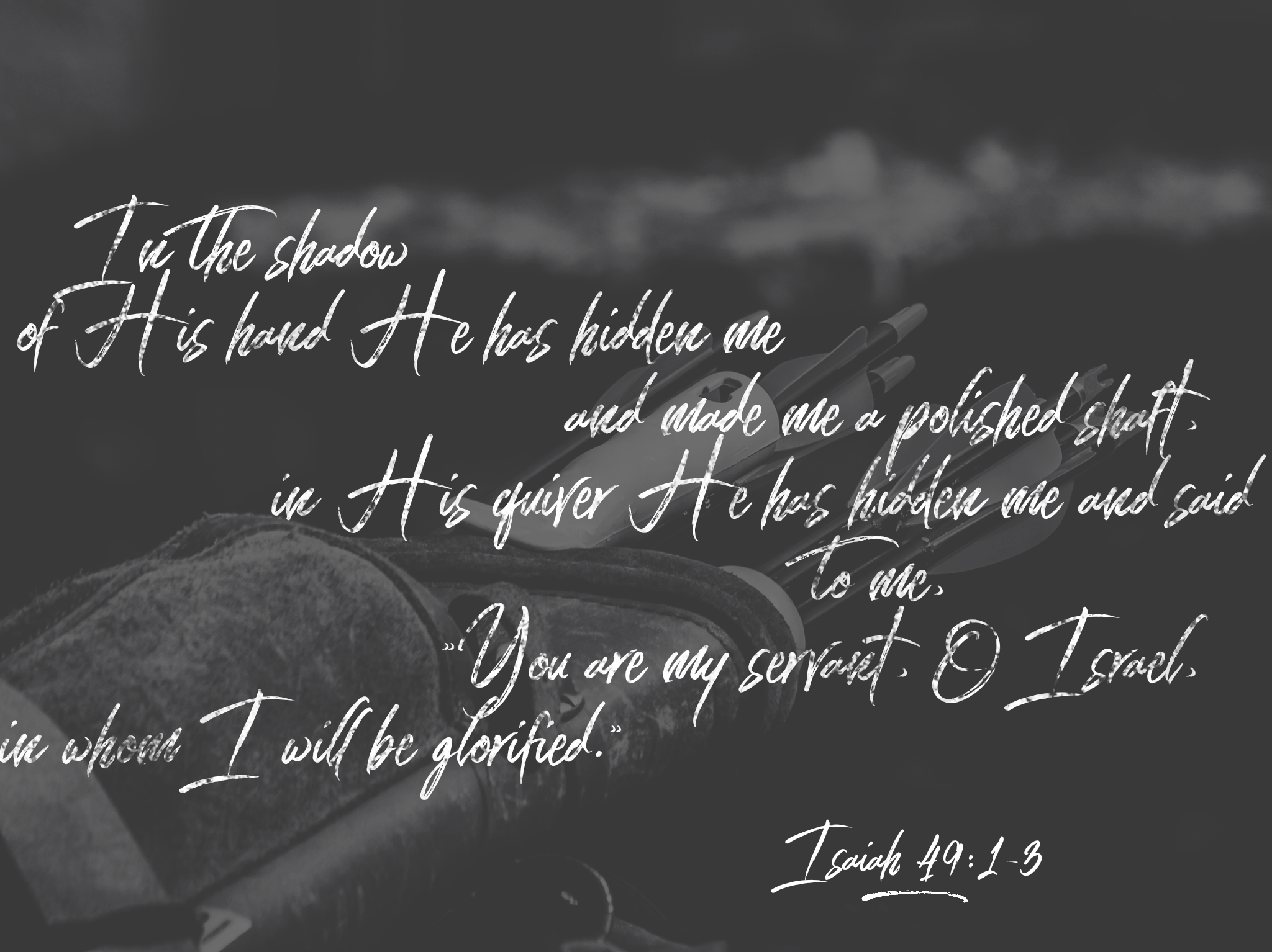 Mining the gold in Isaiah 49 brought me back to the right focus – Christ’s glory. He is the One who saves us and calls us to do a work for Him. He shelters us with His protection, and in the shade of His authority, He tests us and sharpens us – to be arrows, hidden in His quiver, used for His honor and praise. His plan is bigger than we can comprehend – with an eternal value. I often forget that. Our reward is always with Him. He’s faithful – rest in that.